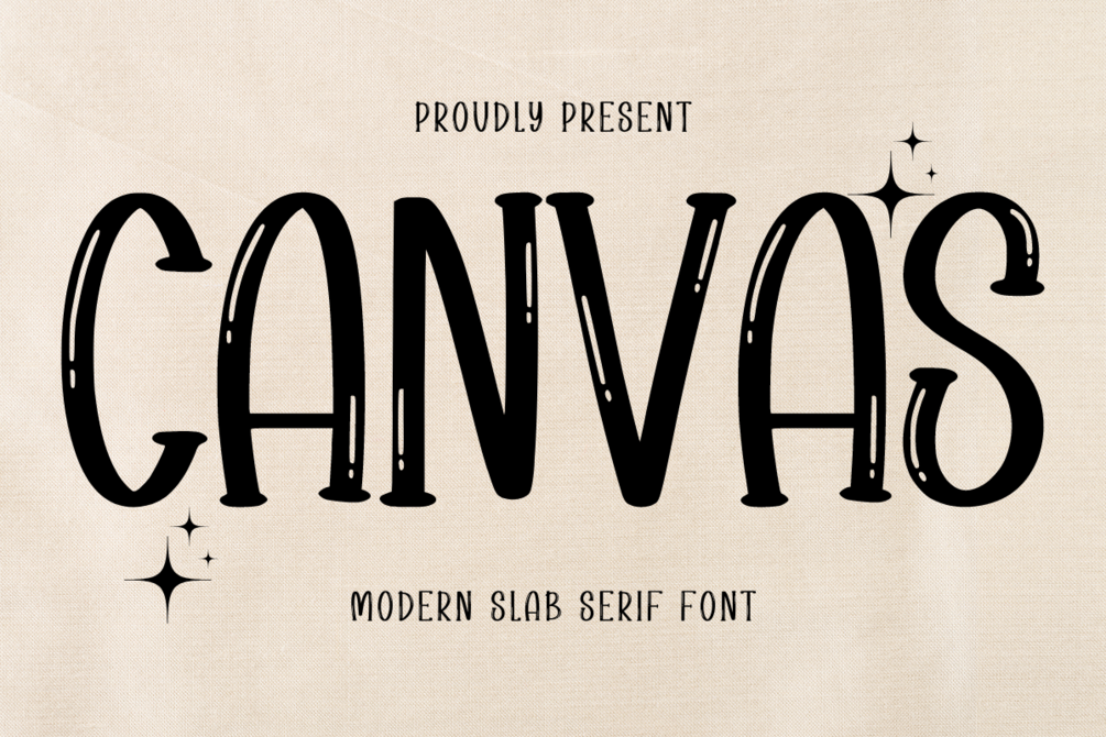 Canvas is a thick and modern slab serif font. The wide characters and chunky serifs make this font ideal for eye-catching designs. You can use it for headlines, poster, packaging, merchandise, quotes, t-shirt typography, banners, product labels, and many more.