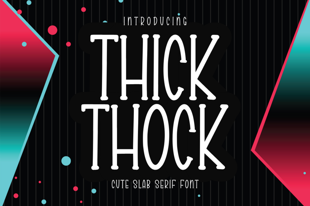 Thick Thock is a thick and playful slab serif font. The wide characters and chunky serifs make this font ideal for eye-catching designs. You can use it for headlines, poster, packaging, merchandise, quotes, t-shirt typography, banners, product labels, and many more.